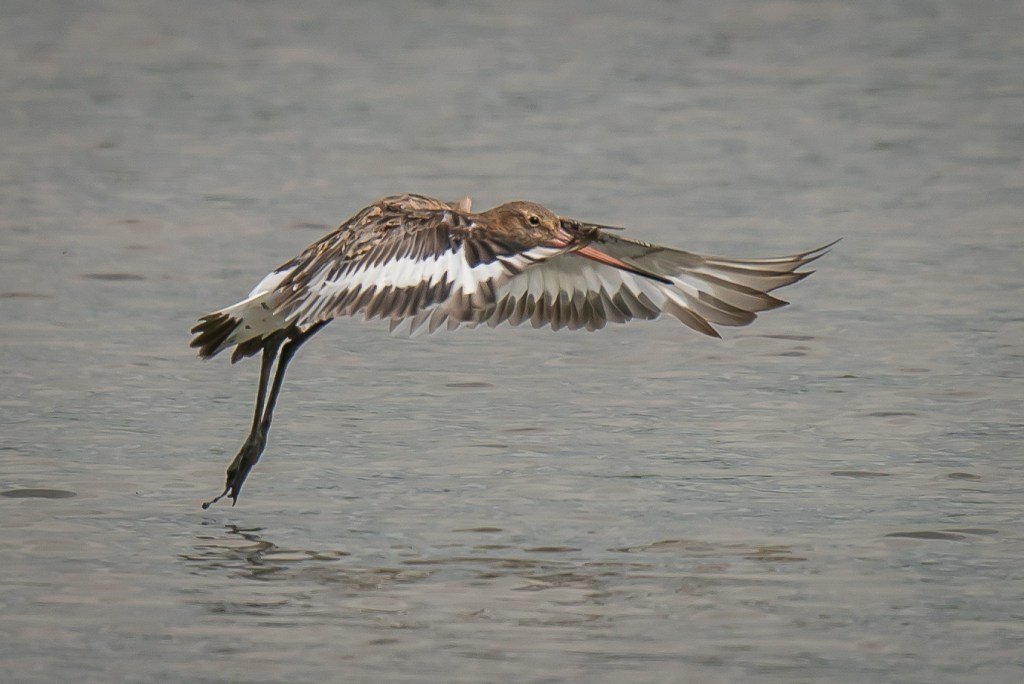 Black tailed godwit in flight