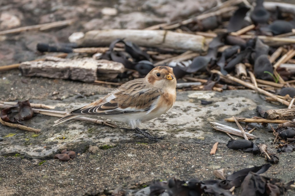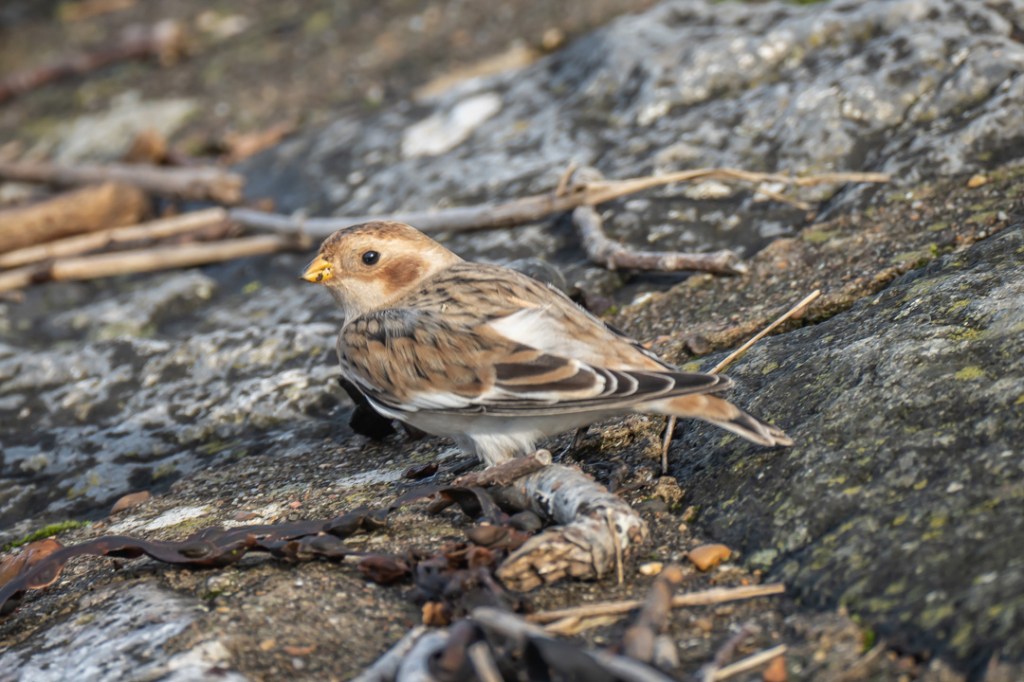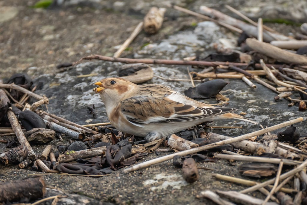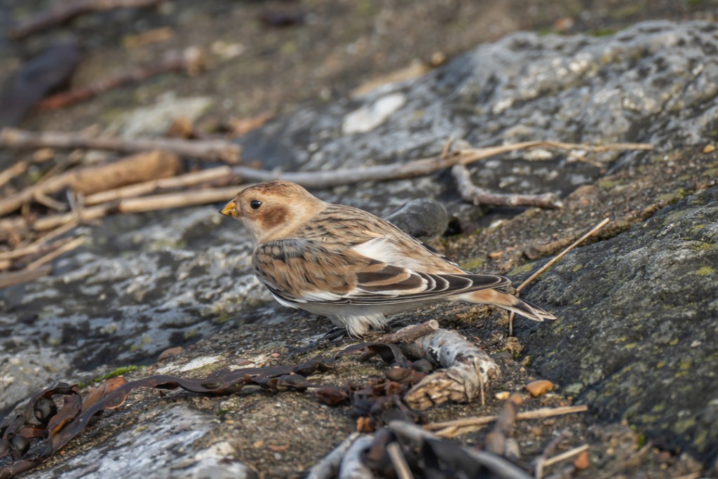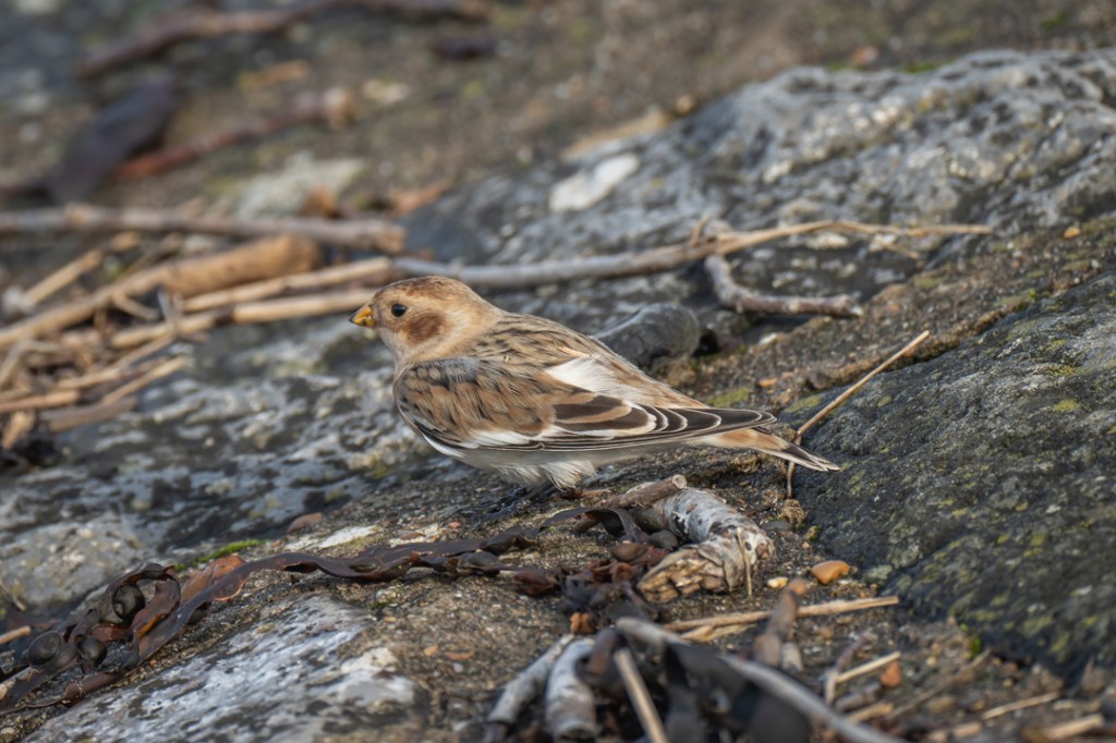 We took our daily lockdown exercise by walking from Severn Beach to New Passage along the Severn Estuary and back. We saw a few waders at New Passage but must have walked past the snow bunting (definitely the star bird for me this year) on our journey out. Luckily, with a helpful tip off from another birder (thank you Lisa), we had fabulous views of it on the way back. It was so close to the pathway and was unperturbed by walkers or dogs. Quite amazing.