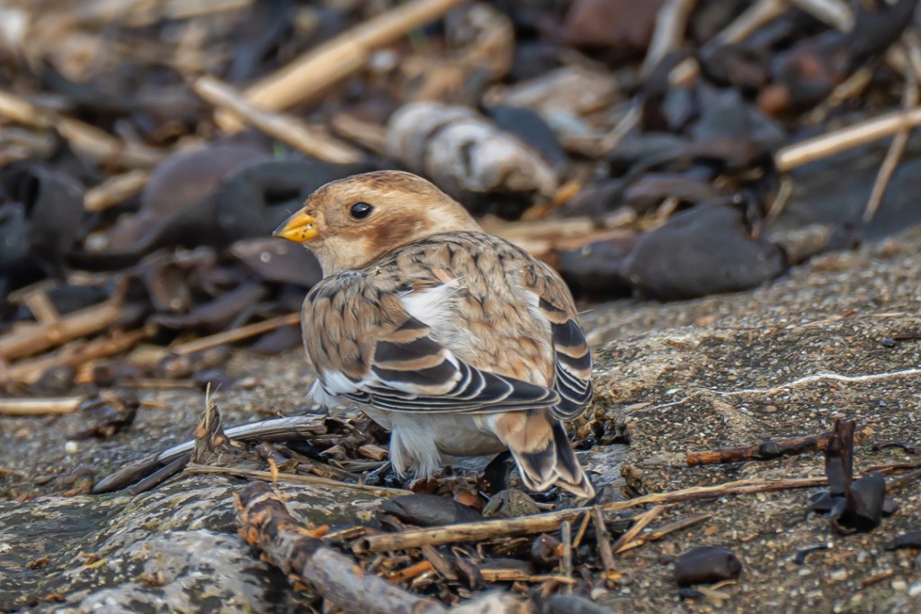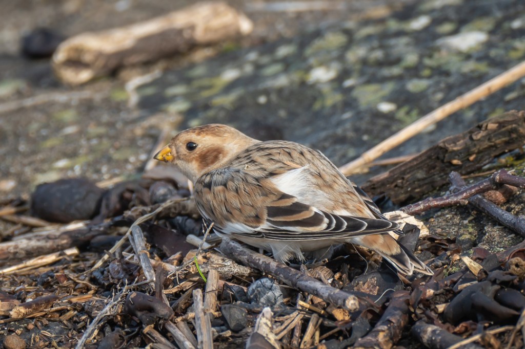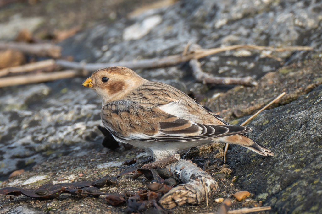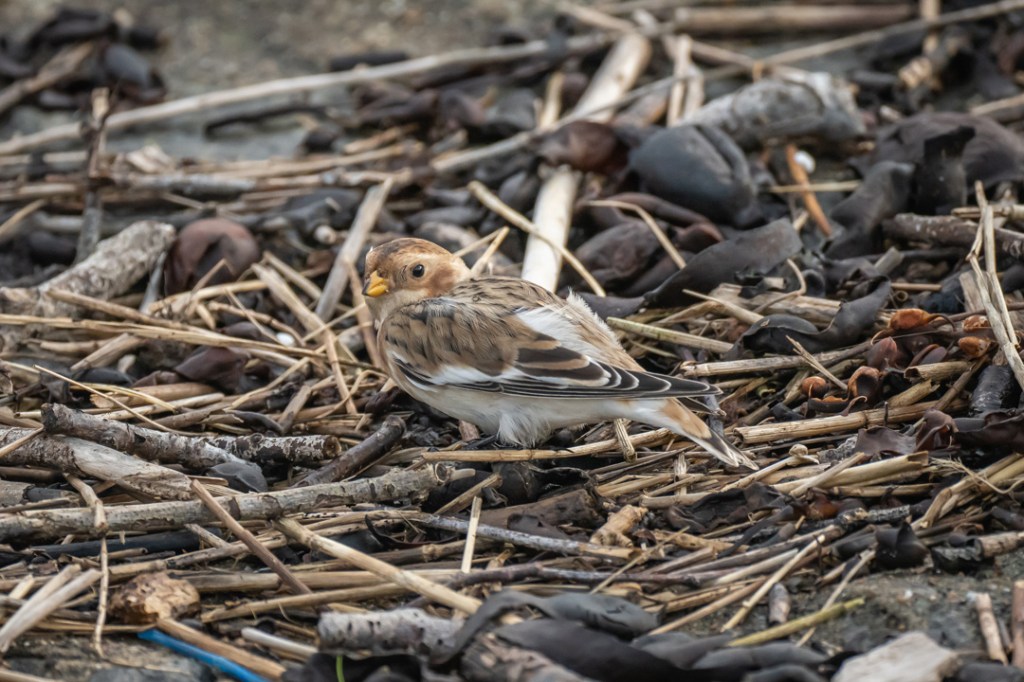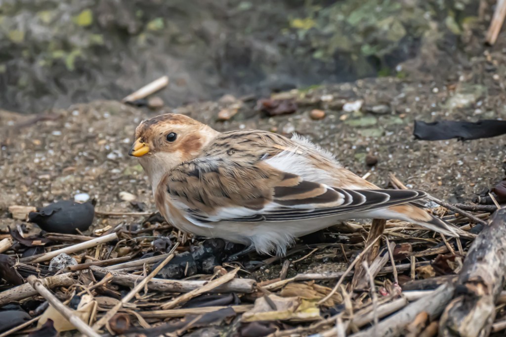 We took our daily lockdown exercise by walking from Severn Beach to New Passage along the Severn Estuary and back. We saw a few waders at New Passage but must have walked past the snow bunting (definitely the star bird for me this year) on our journey out. Luckily, with a helpful tip off from another birder (thank you Lisa), we had fabulous views of it on the way back. It was so close to the pathway and was unperturbed by walkers or dogs. Quite amazing.