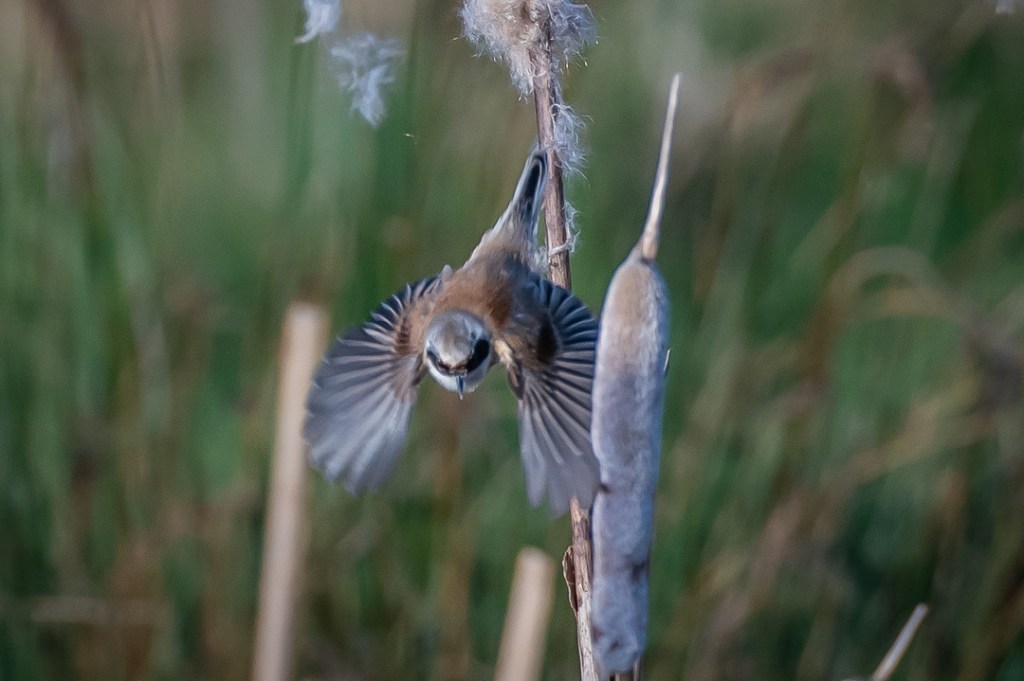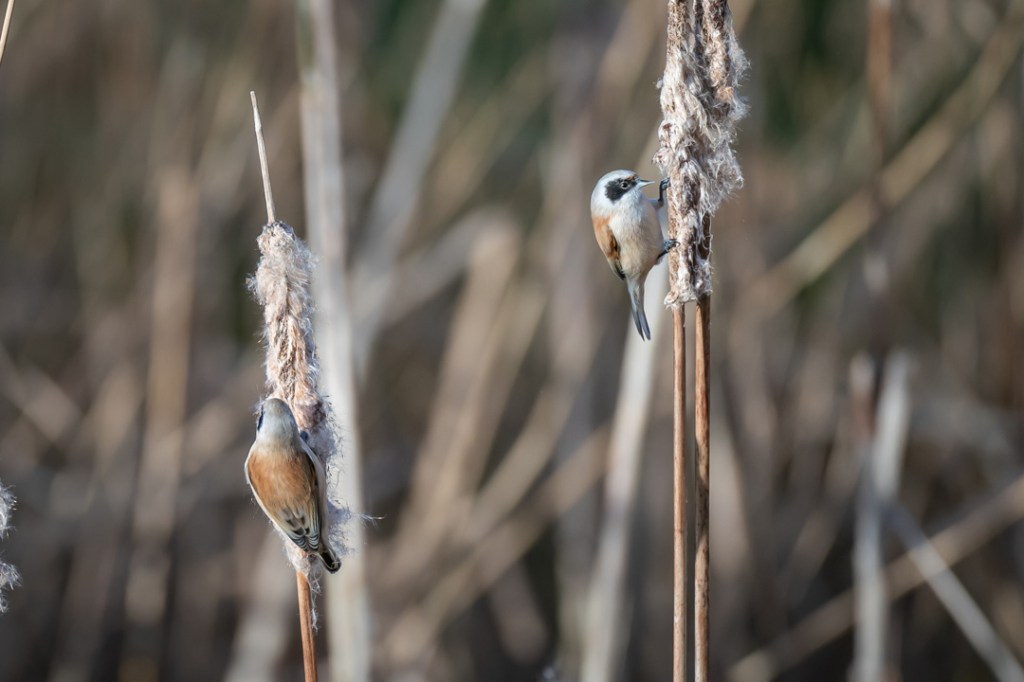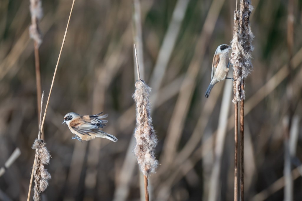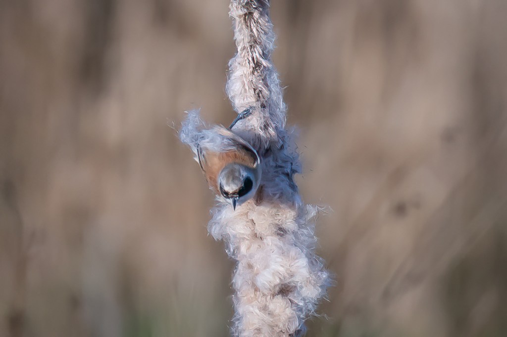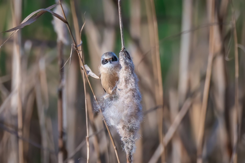 I was hoping to see the penduline tits which I have never seen and which had been reported here recently. There was a fresh breeze and it was very cold but I was encouraged by the excellent light. However, for the first hour I only saw reed buntings and stonechats. My patience was well rewarded , however, when two penduline tits appeared and stayed around feeding on the bull rushes until I felt I could take no more photos.