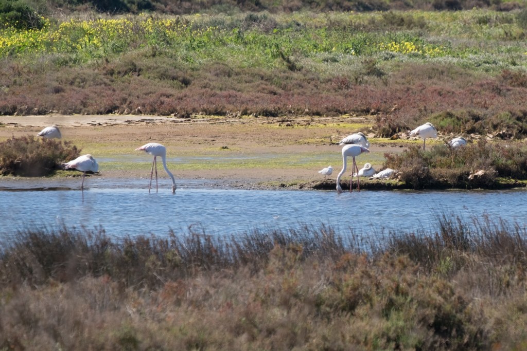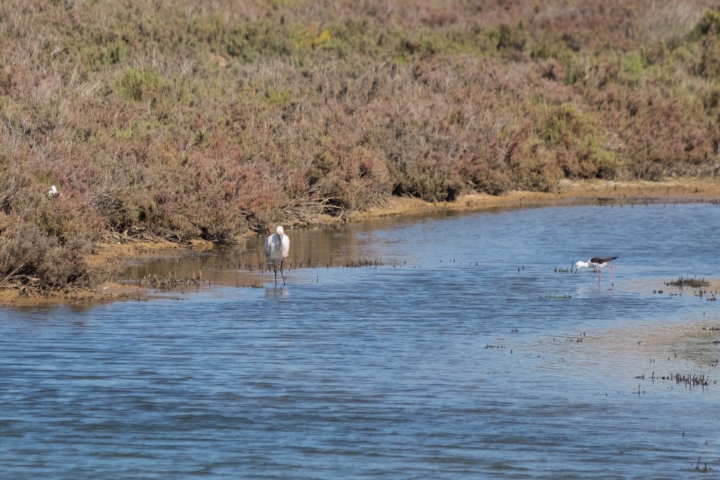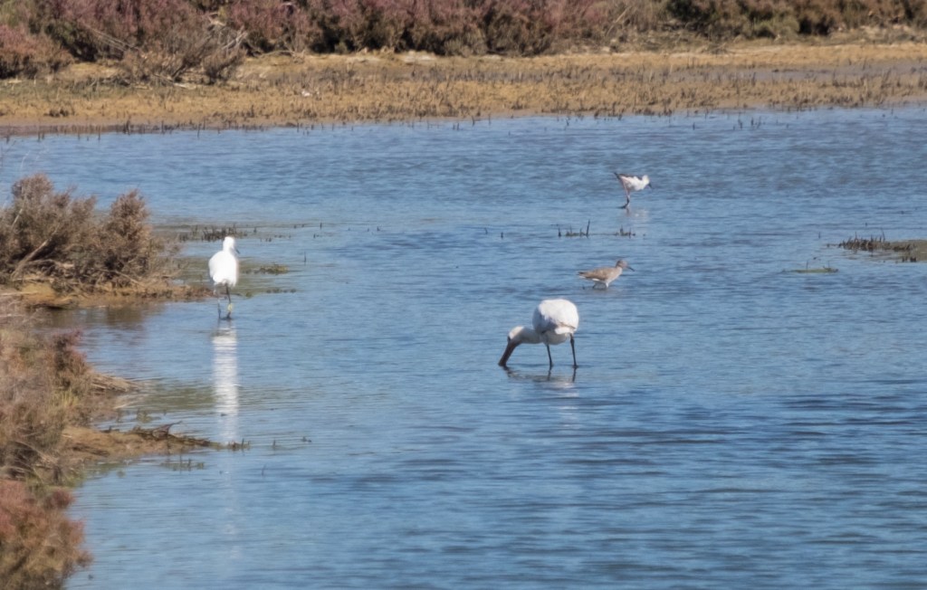 The highlights were the White Storks, the Spoonbills, the Black-winged Stilts and the Flamingos. Common Sandpiper, Redshanks, Gulls, Skylarks, Little Egrets and a Kestrel also feature. Also saw a Kingfisher (of course).