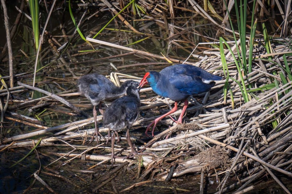 We had a fabulous view of a western swamphen with chicks and, as well as the usual large birds, others saw a great reed warbler and heard a golden oriole.