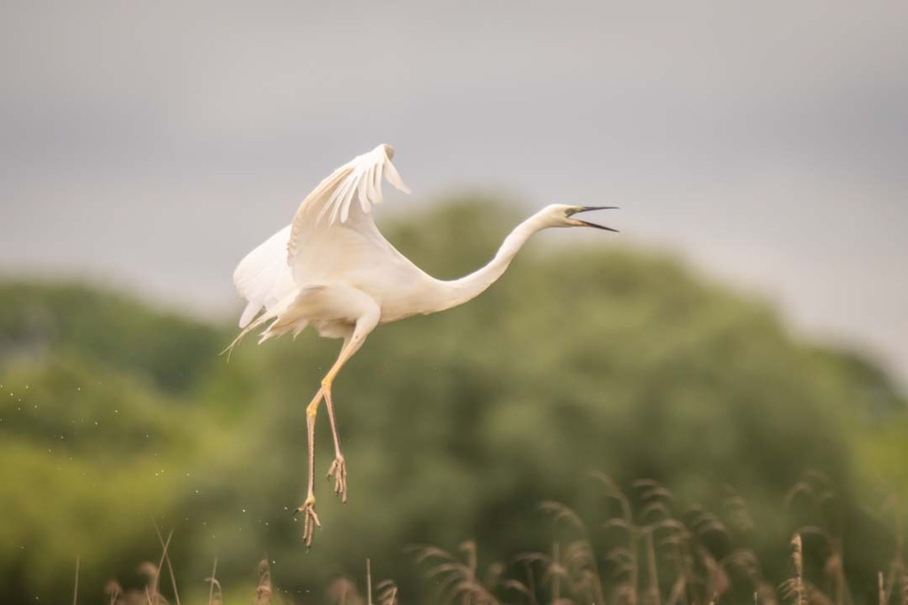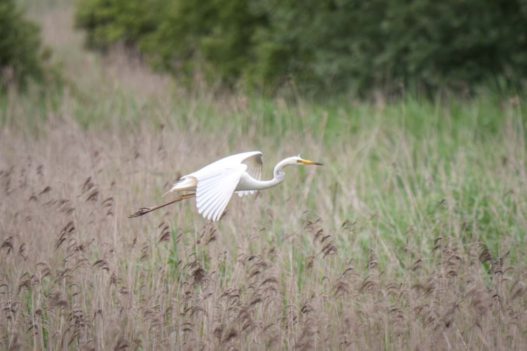 This great white egret was blocking my path to the Tor hide, but I didn’t mind waiting… especially as I had to manoeuvre my way past this groupI didn’t have to wait long for the great white egret to move onThese greylag geese were the first action from the Tor hideQuickly followed by a pochard… and then a great spotted woodpeckerCoot chickssoon to be replaced by a grey heron… who didn’t stay longGreat white egrets were very activeA great bittern surprised me as I made my way to the Avalon hideGreat bittern in full flightGreat bitternGreat white egrets everywhereMarsh harrier from the Avalon hideGetting ready to landThen a male marsh harrier appearedI was so busy trying to photograph swifts in poor light that I nearly missed this common craneYou can see why I had no chance with the swiftsHow could you miss such an enormous bird?Great cormorant taking offThe great white egrets were quite showyBut a nice way to end my day