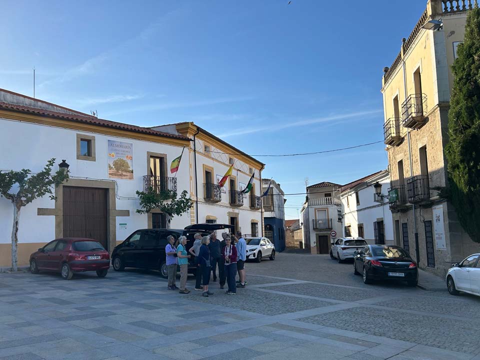 This was the way to start our trip. We stopped after a few minutes in the nearest village as our guides went in search of supplies. So the birding began In the main square of Almoharin.